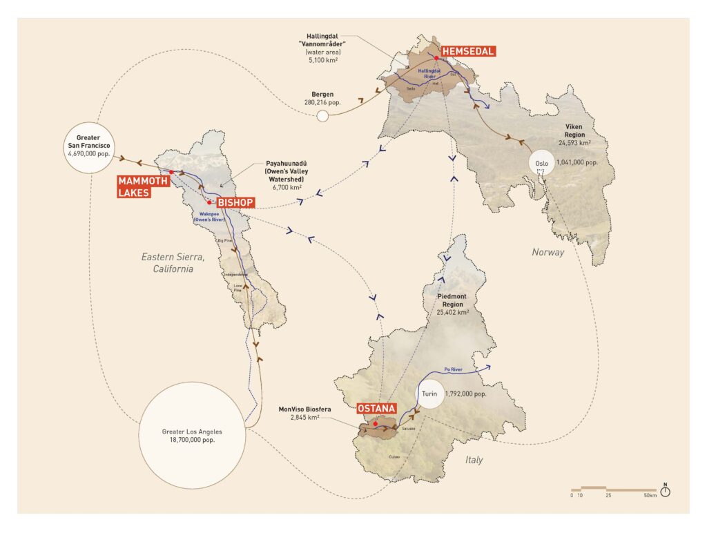 These aims and methodologies are explored through the comparison of three diverse “living examples” of mountain communities undergoing sustainability transitions: Ostana, Italy (Figure 1); Hemsedal, Norway (Figure 2); Mammoth Lakes/Bishop, California (Figure 3). Many mountain communities are facing similar complex challenges, such as urban-to-rural migration accelerated by COVID-19, extreme climate change events and polarizing politics, yet the triggers of these interrelated issues often remain invisible, misunderstood, or are only addressed in a siloed manner. In response, this project explores processes to better understand, engage and intervene within the complexity of such challenges, i.e., by revealing hidden connections and activating new synergies between seemingly disparate or conflicting aspects of social-ecological systems.