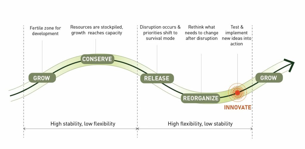 - Narrative inquiry, evaluated quantitatively and qualitatively through the adaptive waves model of resilience (Figure 4) collected and assessed through ethnographic methods such as field notes, walking interviews, semi-structured interviews, co-design workshops, visual dialogue