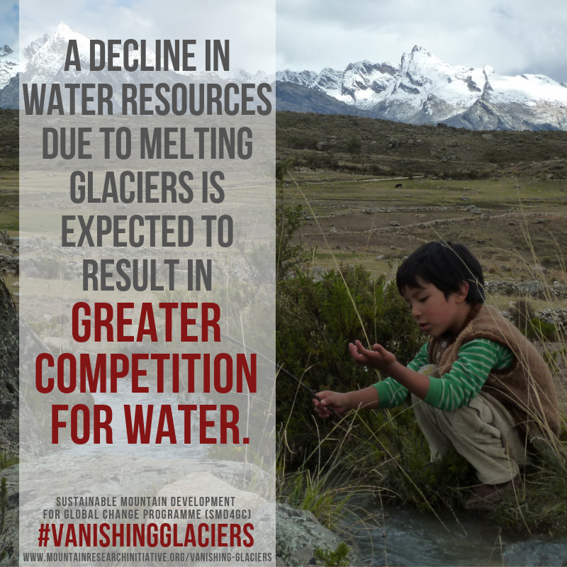 A decline in water resources due to melting glaciers is expected to result in greater competition for water.