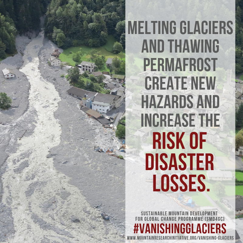 Melting glaciers and thawing permafrost create new hazards and increase the risk of disaster losses.