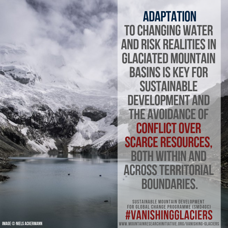 Adaptation to changing water and risk realities in glaciated mountain basins is key for sustainable development and the avoidance of conflict over scarce resources, both within and across territorial boundaries.