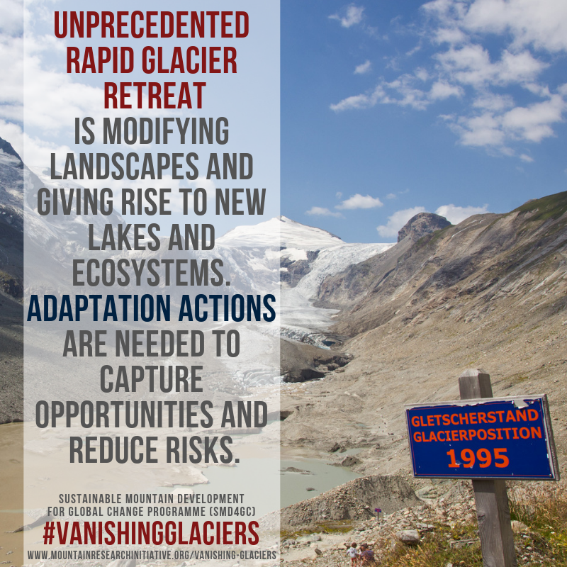 Unprecedented rapid glacier retreat is modifying landscapes and giving rise to new lakes and ecosystems. Adaptation actions are needed to capture opportunities and reduce risks.